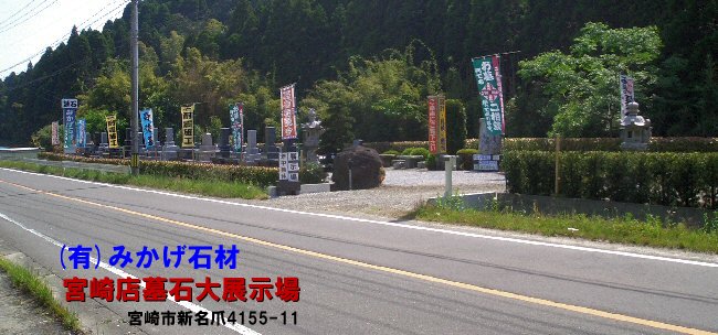 宮崎市みたま園東入り口前(ハンズマン・マルショク側)宮崎自社工場・墓石大展示場